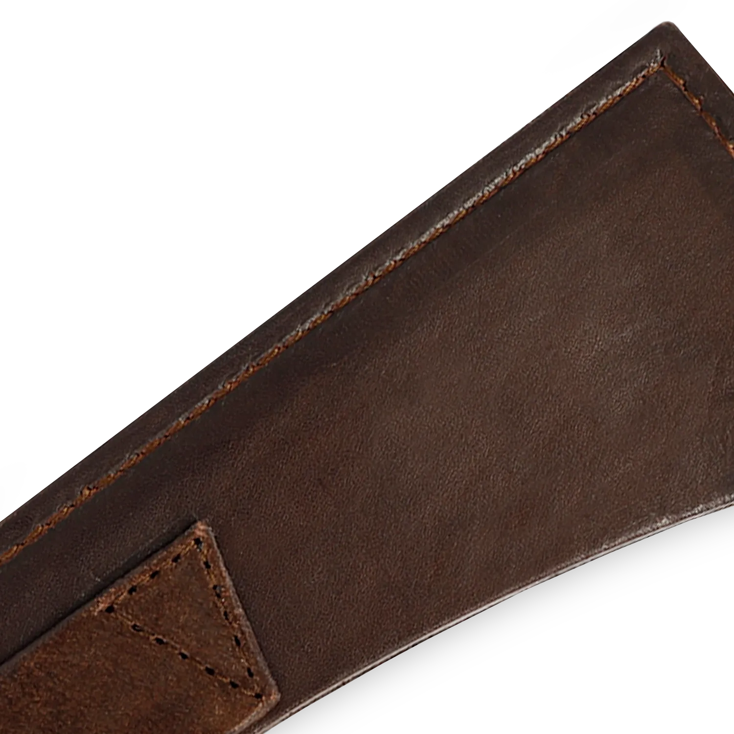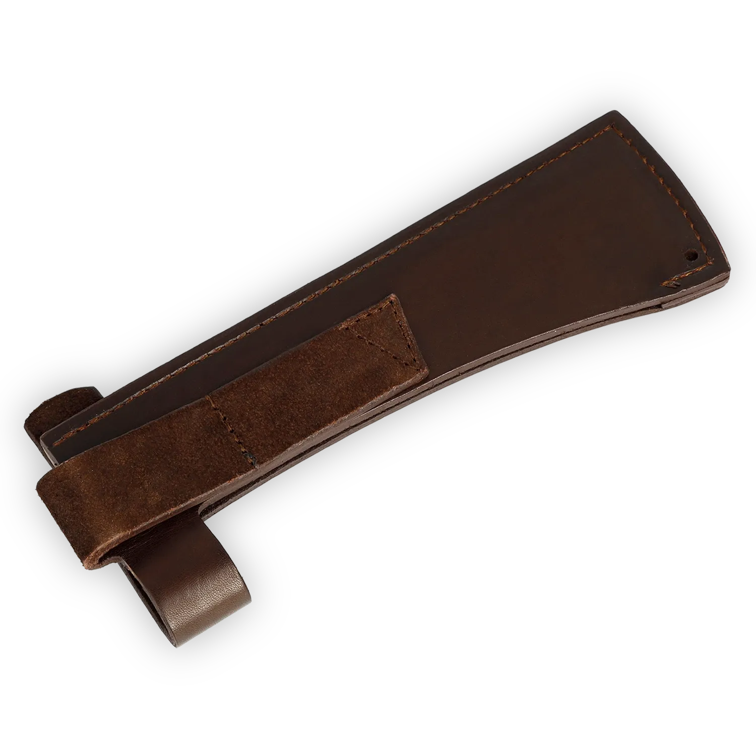 Handgemachte Lederscheide für das Fire Kitchen 2Lederscheide passend zum Fire Kitchen 1 aus Rindleder. Das Leder wurde in Deutschland vegetabil gegerbt. Da es sich bei der Lederscheide um ein Naturprodukt handelt, das in Handarbeit hergestellt wurde, sieht jede Lederscheide farblich anders aus und kann von der hier gezeigten Darstellung etwas abweichen.