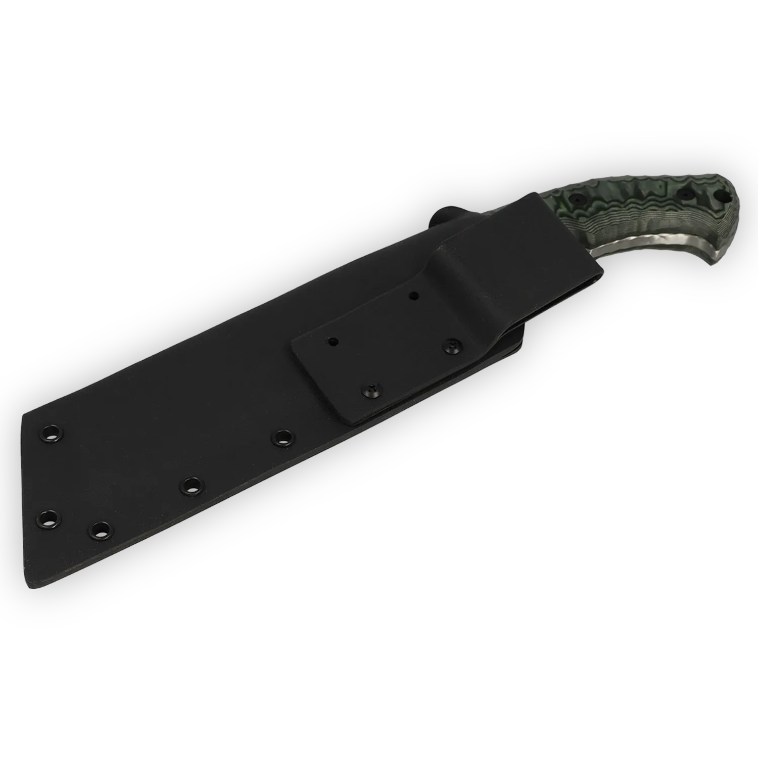 Survival Deutschland Zerstörer Carbonstahl / Micarta schwarz-grün mit Rockfinish / Kydexscheide mit Gürtelhalter